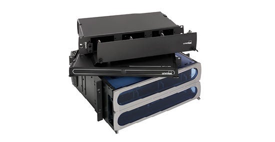 - Terminación de campo eficiente: La plataforma SDX permite una terminación de campo fácil de conectores y empalmes en una huella de densidad estándar. El sistema, que generalmente se implementa con el tubo suelto o el cable a granel ajustado de Leviton, ofrece una variedad de opciones de terminación en campo, que incluyen bandejas de empalmes, módulos de empalmes, cables flexibles y conectores de fibra mecánica.
